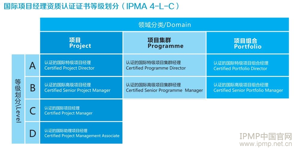 国际项目经理资质认证(International Project Manager Professional,简称IPMP)是国际项目管理协会(International Project Management Association,简称IPMA)在全球推行的四级项目经理资质认证体系的总称。IPMP是对项目管理人员知识、经验和能力水平的综合评估证明,具有广泛的国际认可度和权威性,代表了当今项目管理资格认证的国际水平和世界潮流。IPMA现有近70个成员国组织,由代表各国最具权威性的项目管理专业组织经申请成为IPMA成员国代表,各成员国在各自特殊的文化背景下推动着不同类型的项目管理的专业化发展。同时,IPMA与北美洲、澳洲和南非全国性协会的制度接触实现了国际项目管理协会真正意义上的全球化。