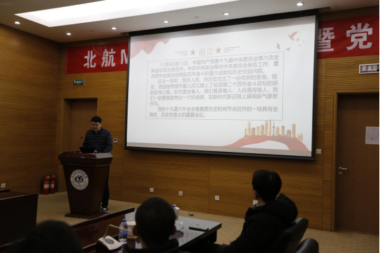 北航2021级MEM非全日制研究生临时党支部书记刘宇翔同学带领大家共同学习了“十九届六中全会精神”。