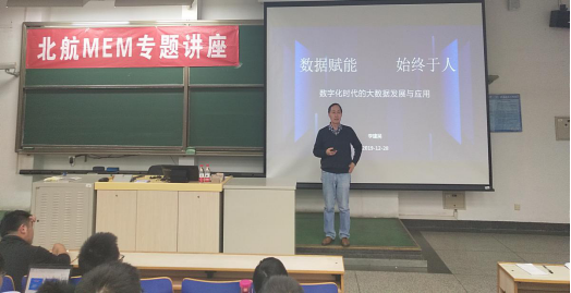 2019年12月28日,北航MEM教育中心在主M202举行了第三期工程管理硕士专题讲座,特邀戴尔(中国)有限公司大数据总监李建民做了主题为《数字化时代的大数据发展与应用》的专题讲座,由北航经济管理学院闪四清教授主持,MEM中心伊丽娜老师、张野老师及2019级工程管理硕士研究生参加了此次讲座。